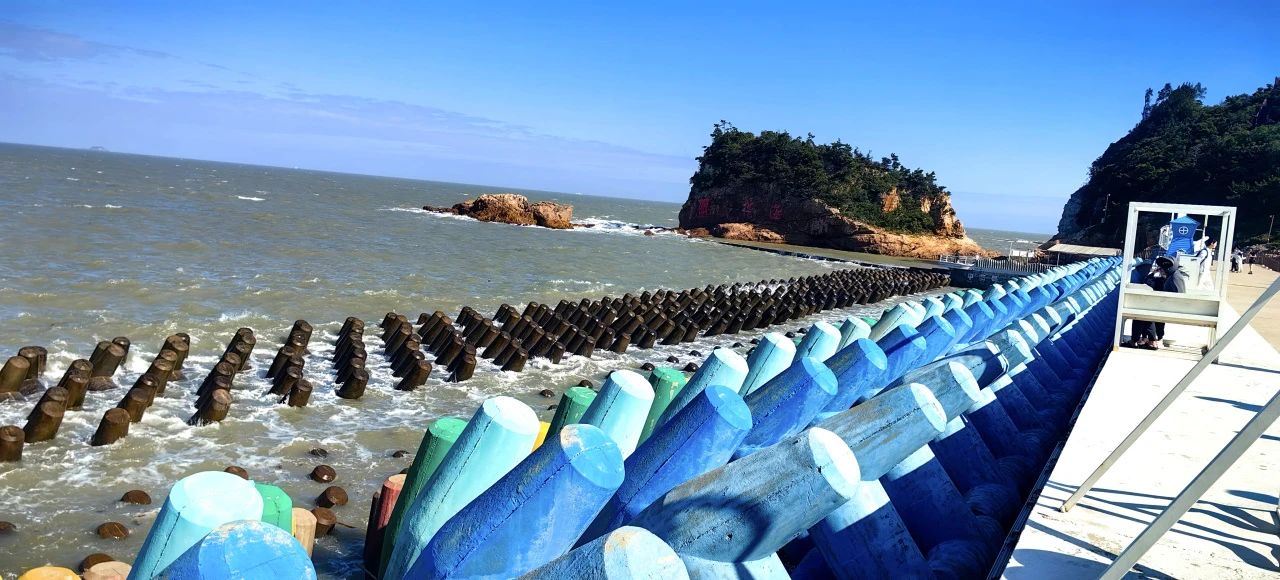 除了邂逅溫柔的海景,領(lǐng)略質(zhì)樸的漁家風(fēng)情,百來米的長(zhǎng)堤上還布置了許多藝術(shù)裝置,創(chuàng)意道具與碧海藍(lán)天的搭配,隨手一拍便能定格下浪漫靈動(dòng)的身影。